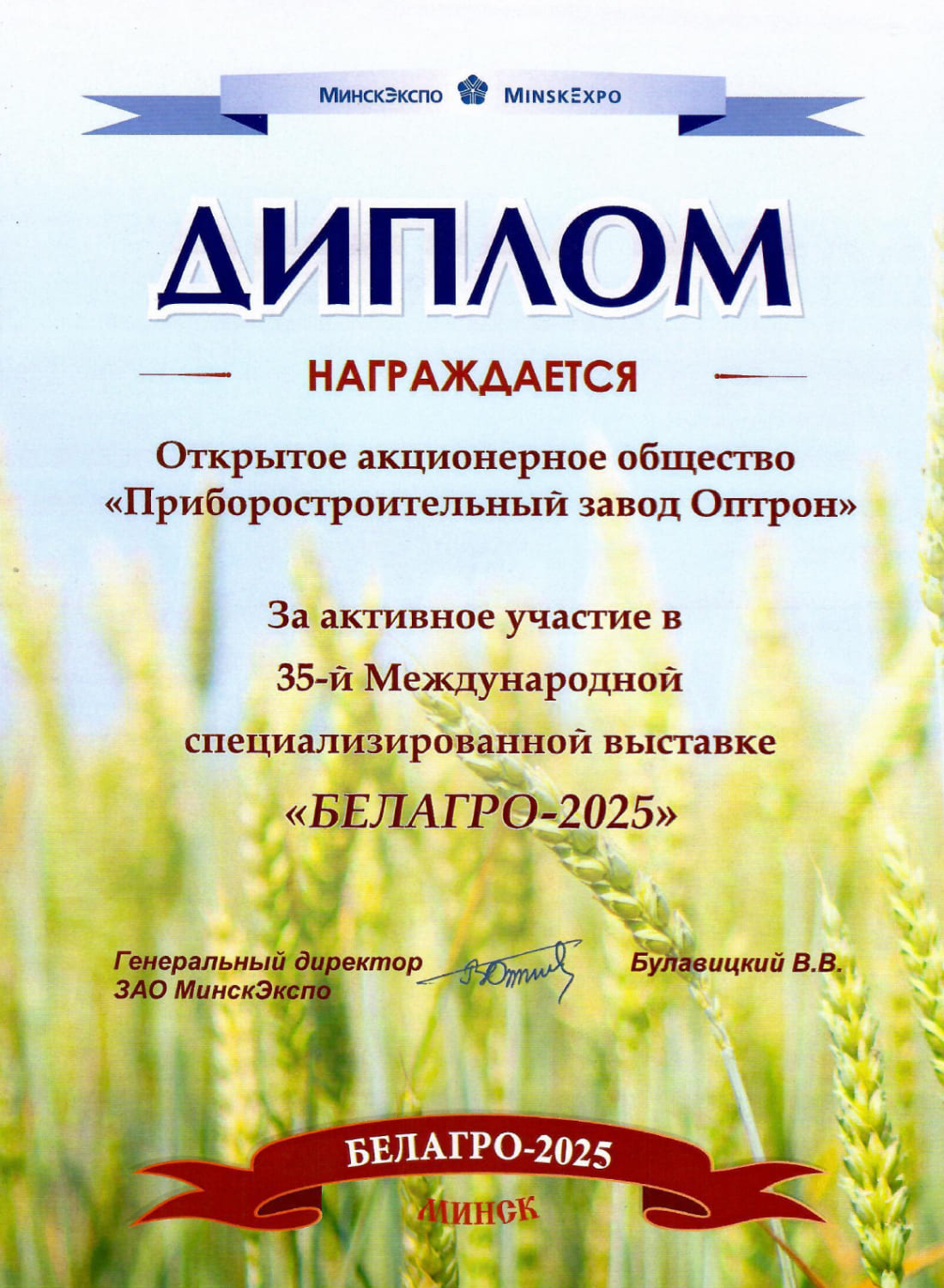 С 3 по 7 июня 2025 года, в Минском международном выставочном комплексе, ОАО «Приборостроительный завод Оптрон» принял активное участие в 35-ой Международной специализированной выставке «Белагро-2025» в составе коллективной экспозиции Национальной академии наук Беларуси.